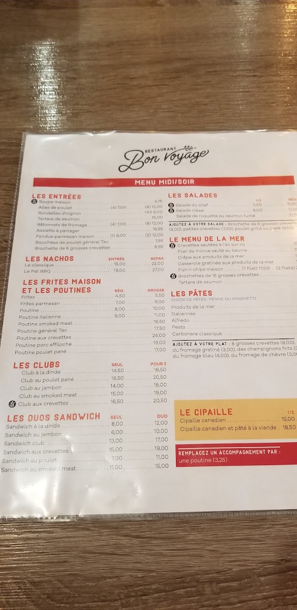 Welcome to Restaurant Bon Voyage, a culinary haven located at 409 Montée Industrielle, Rimouski. This charming eatery captivates with its diverse menu, offering something for every palate. Dinner highlights include exquisitely grilled salmon served with a delicate wine sauce, and succulent chicken skewers infused with Mediterranean flavors. Each dish is thoughtfully paired with seasonal vegetables and sides, ensuring a delightful experience for CA$28.00.